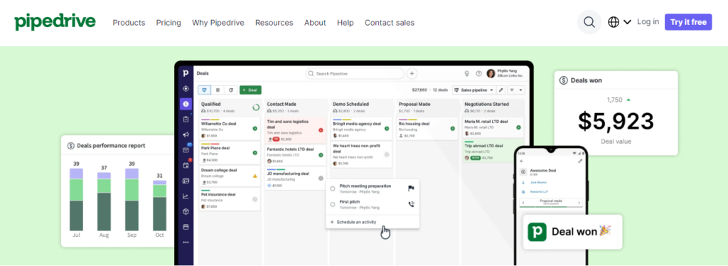 - Deal pipeline management and visual sales tracking