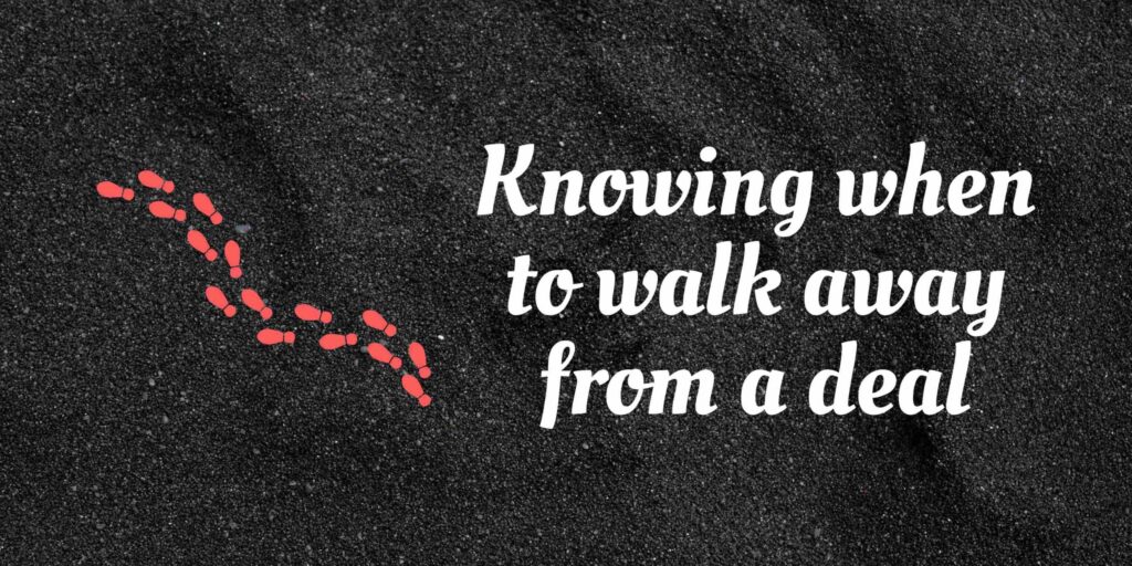 Our brains and hearts are not designed to walk away. Even when our gut tells us that a relationship, a deal, or a project is not going to see the light of the day, we cling to them with desperate hope. It is not just the countless hours of effort put in but the emotions that go into bringing a deal from a nascent stage to where it is today that challenge us from walking away. Walking away also means that you have nothing to show for the efforts put in by you for initiating and grooming the deal.