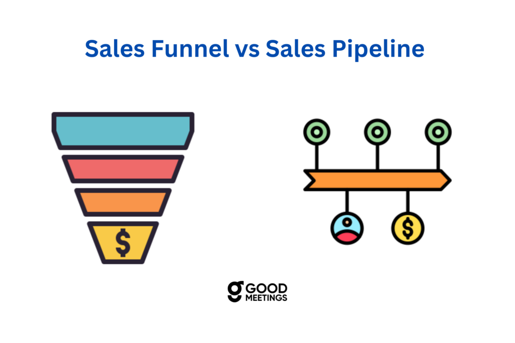 Understanding the difference between a sales funnel and a sales pipeline helps businesses boost their sales processes. While the funnel focuses on customer behavior, the pipeline tracks sales activities. By managing both effectively, companies can improve their sales strategy. Tools like Goodmeetings can further improve this process by providing valuable insights and optimizing meeting performance.