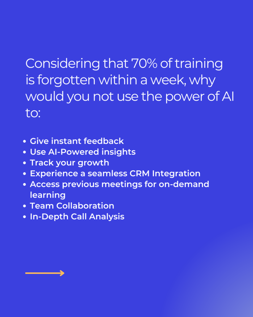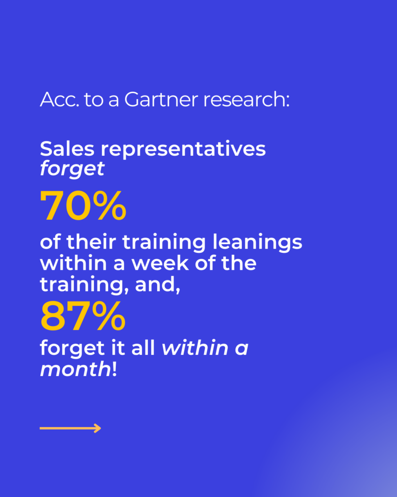 Let’s put it this way: You know how sales reps often struggle to remember all their training? Gartner found out that they forget about 70% of it in just a week! And in a month? Almost everything’s gone. That’s why they end up falling back into old habits, which isn’t really efficient.