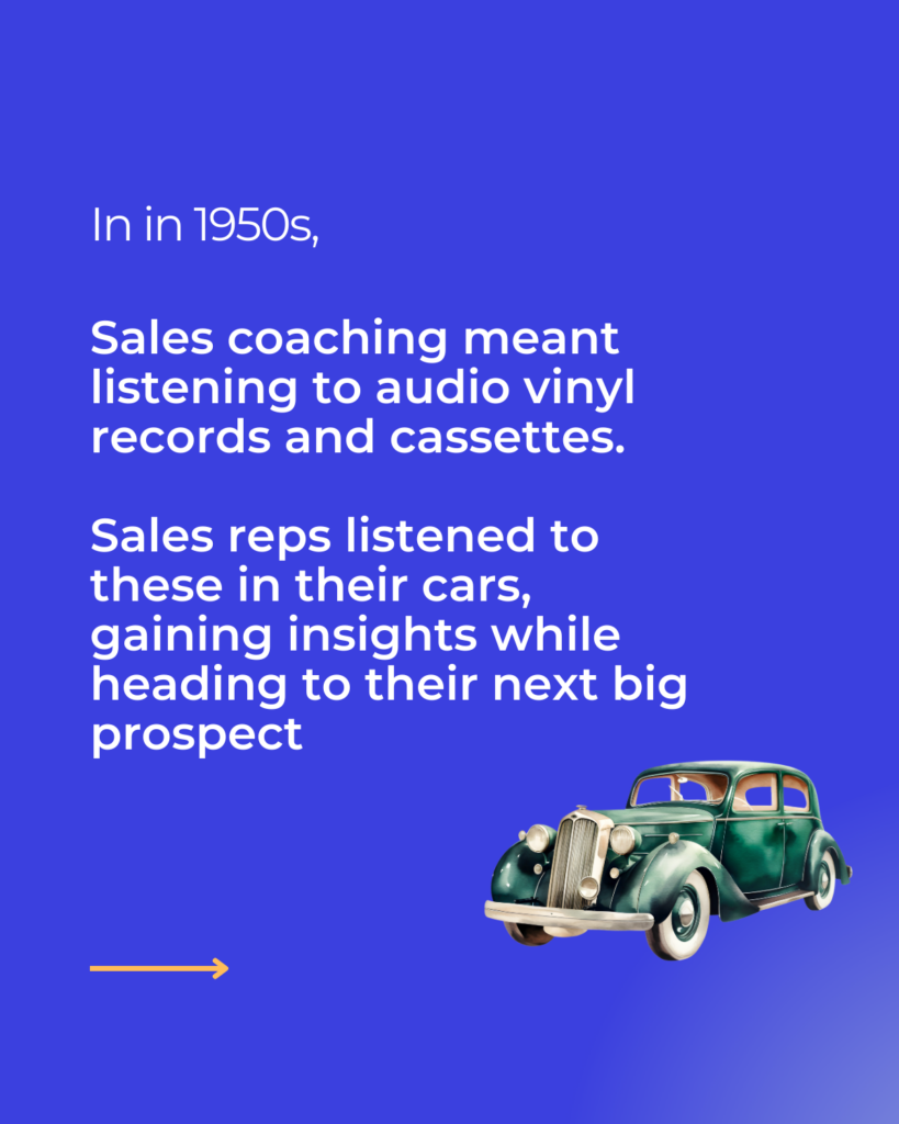 Around 1950, sales coaching audio vinyl records and cassettes became popular with salespersons. Their sales coach was an audio cassette that they would invariably listen to in their car while on the way to meeting a prospect. Around the 1970s, video-based sales coaching was introduced to the sales world. With the introduction of CRMs in the 21st century, sales training took a backseat. Companies began to believe that CRM would automate most of the workflows and take some burden off the salespersons. CRM did provide a lot of convenience on monitoring, managing workflows and reporting; however, it was never a replacement for selling skills.