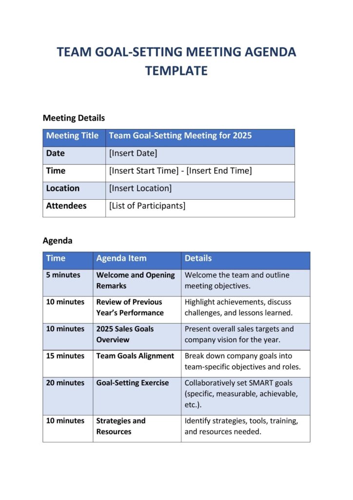 - Download – Free Team Goal-Setting Meeting Agenda Template