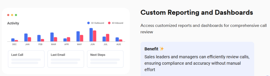 - How it works: The platform offers tools like the Pitch Report Analytics Dashboard, which provides detailed insights into individual and team performance, including key metrics such as sales pitch effectiveness and conversion rates.