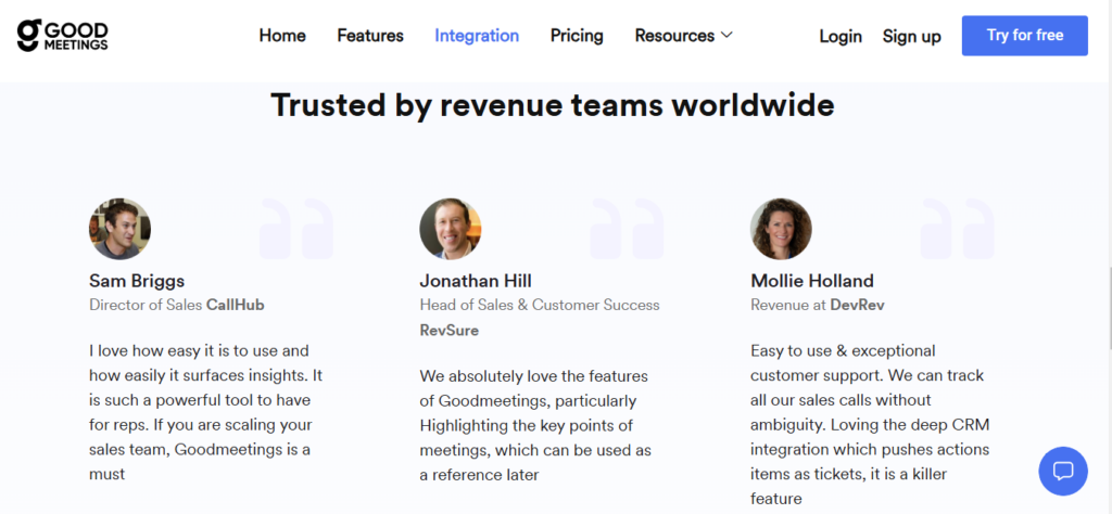 - How it works: Goodmeetings provides real-time analytics and intelligent recommendations based on meeting data and sales performance.