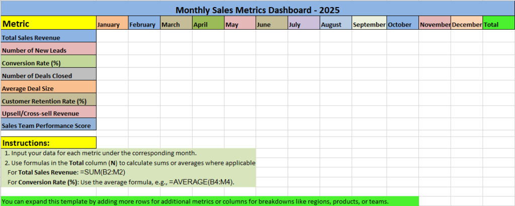 - Download – Free Monthly Sales Metrics Dashboard