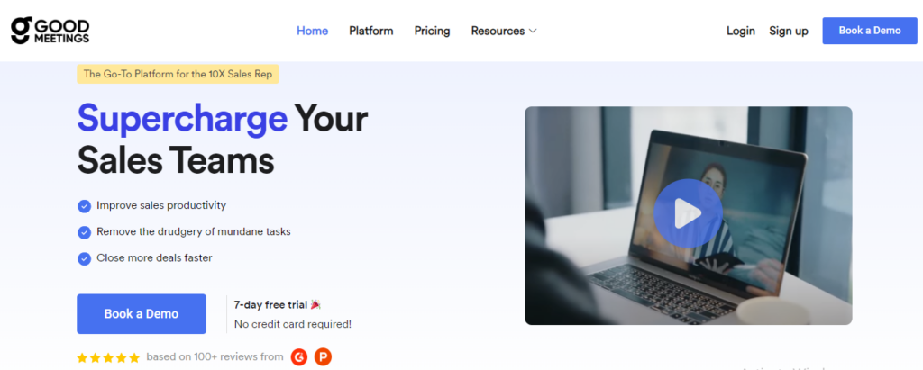 With its advanced AI technologies, Goodmeetings helps sales teams focus on high-value activities so they can enjoy improved sales outcomes and accelerated deal closures.