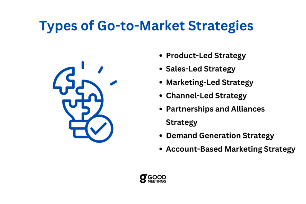 A go to market strategy can take different forms depending on your – product, market, and business goals. And, choosing the right strategy is crucial to your success. Here are the main types of go-to-market strategies: