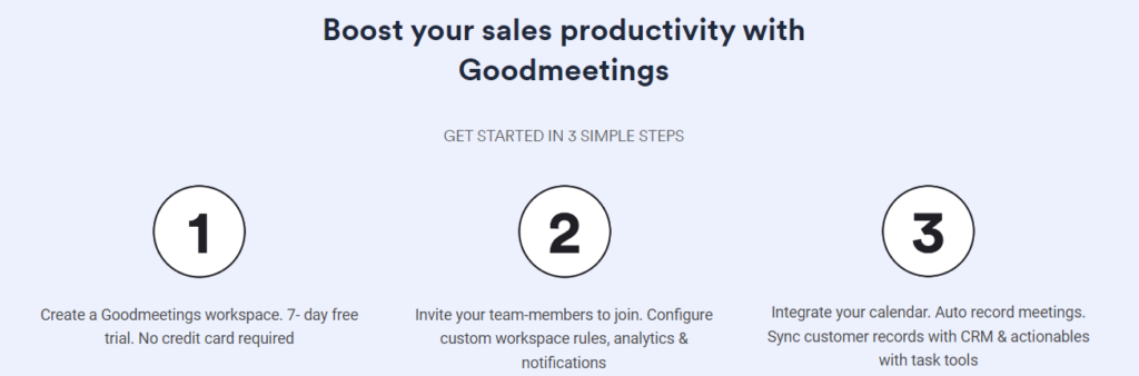 And the best part? You can start using Goodmeetings without spending a dime with a 7-day free trial offer. You can also see how the tool works by booking a free demo.