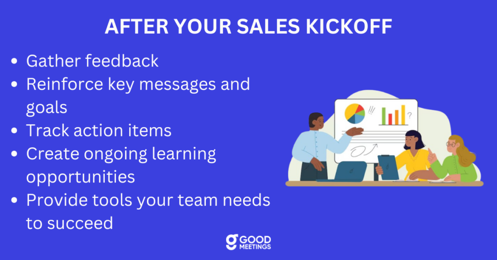Following the sales kickoff, provide ongoing reinforcement of the themes, objectives, and goals discussed during the meeting.