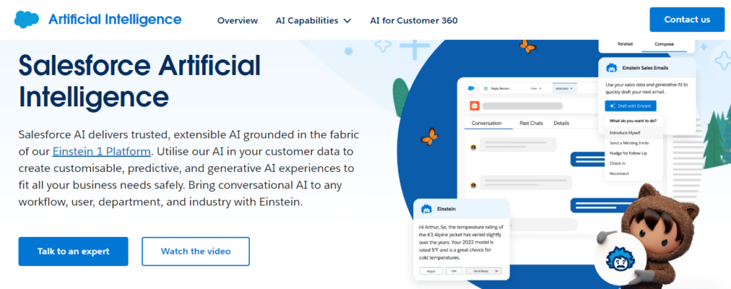 Salesforce Einstein GPT is a powerful tool integrated into Salesforce’s Sales Cloud packages, catering to large enterprises. It enhances productivity by generating sales tasks, automating lead scoring, and transcribing sales call highlights. The tool leverages OpenAI’s ChatGPT to compose emails and offers dynamic content generation through the Marketing Cloud.