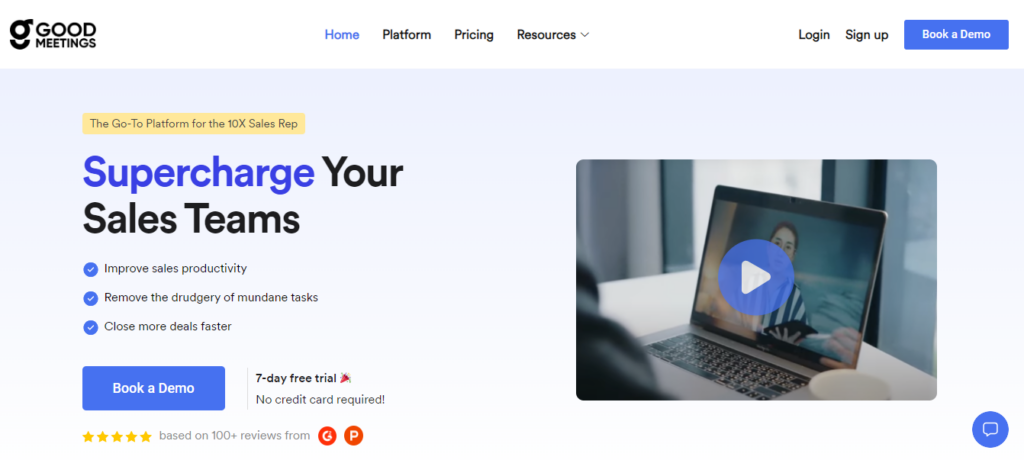 Want to try Goodmeetings? You can sign up for free and enjoy a 7-day free trial or opt for the free demo to see how the tool works.