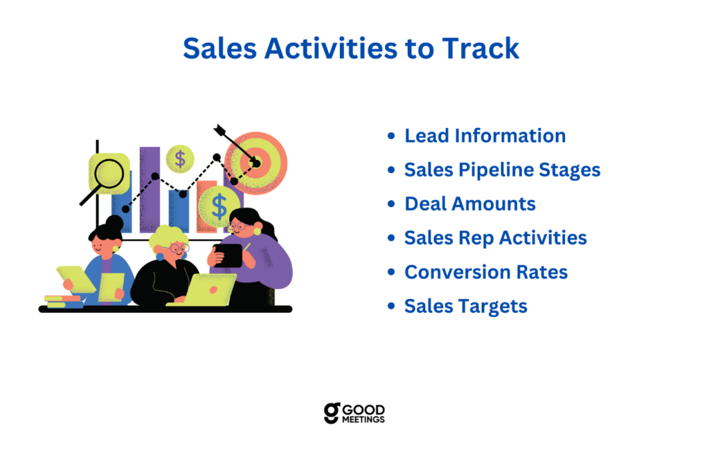 Tracking key sales activities helps you monitor progress, spot trends, and make informed decisions. Here are the important activities to include: