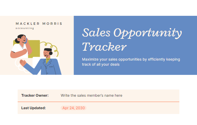 A sales opportunity tracker helps you keep track of all potential sales opportunities. It organizes details like the deal size, stage, and next steps. This helps you focus on the best chances to close deals and boosts your overall sales performance.