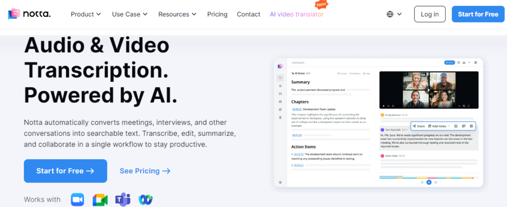 - Notta AI – Best Meeting Recording Software for Windows