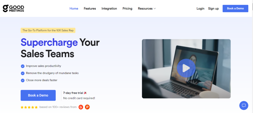 Goodmeetings is an AI-powered platform designed to boost your sales team’s meeting performance. It can significantly improve your sales mix by optimizing your sales strategy through smart data insights and automation.