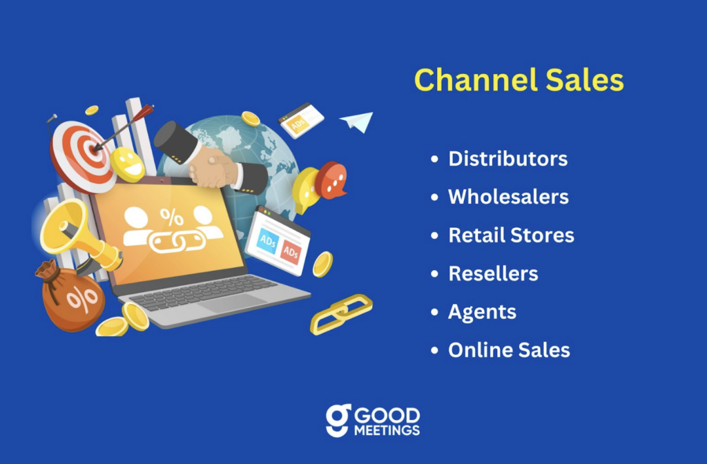 Channel sales is a strategy where businesses partner with third parties to market and sell their products. Instead of selling directly to customers – you can use distributors, resellers, or agents to reach a wider audience.