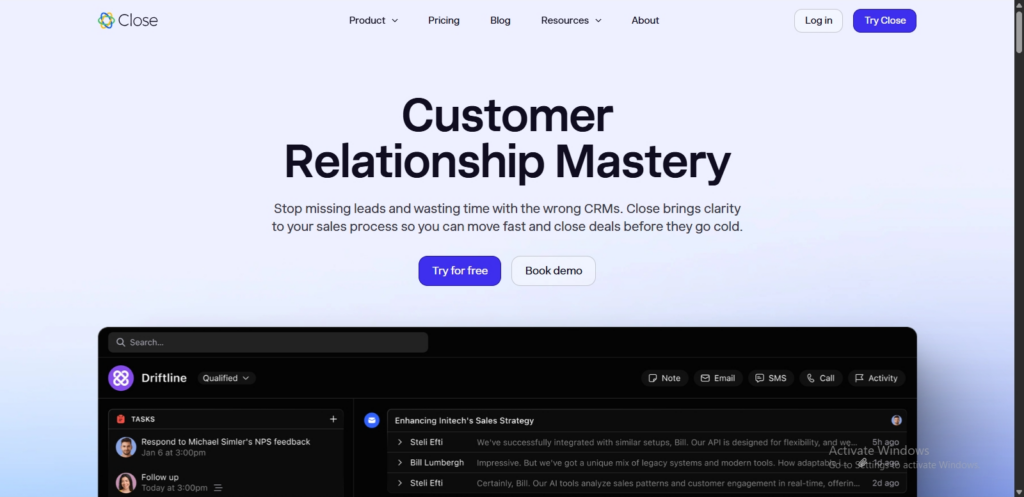 Close is a CRM platform built to speed up the sales process without piling on extra complexity.