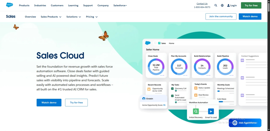 Next on our list is Salesforce Sales Cloud, an automation tool that teams can use to streamline selling, strengthen customer relationships, and make faster, smarter decisions with AI-driven insights.