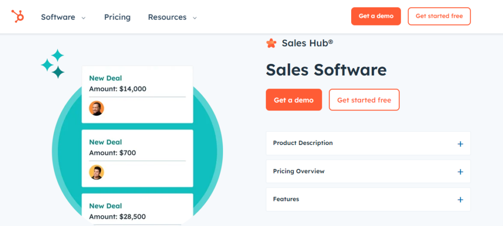 HubSpot Sales Hub is a CRM software that offers sales analytics, sales automation, and contact management features.