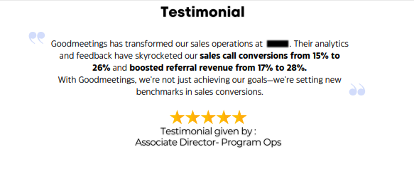 Overall, by leveraging Goodmeetings, this firm was able to achieve its sales goals & set new benchmarks in sales conversions.