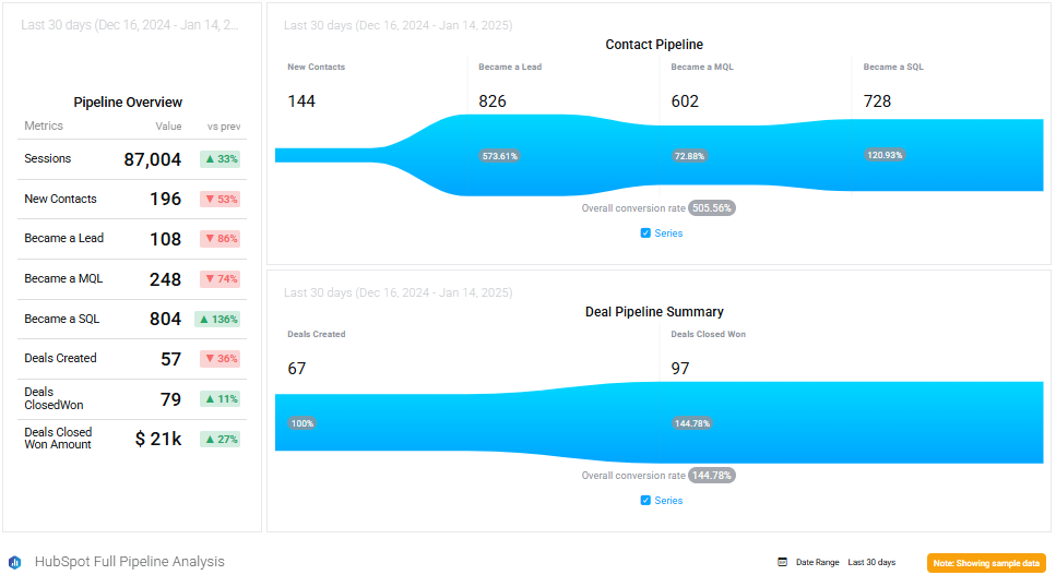 Template 2: HubSpot Full Funnel Analysis Dashboard
