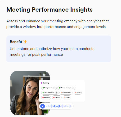GoodMeetings simplifies the process by recording, transcribing, summarizing, and analyzing online sales calls and meetings. This tool offers two key benefits: