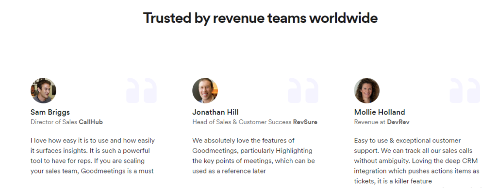 It is an AI-powered SaaS tool that helps record, transcribe, summarize and analyze all your virtual sales conversations. With Goodmeetings, you can