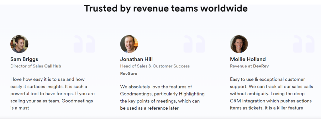 Goodmeetings is an AI-powered platform designed to boost your sales team’s meeting performance. It can significantly improve your sales mix by optimizing your sales strategy through smart data insights and automation.